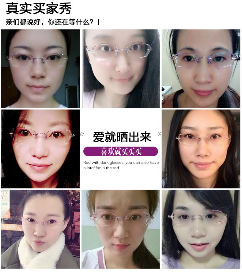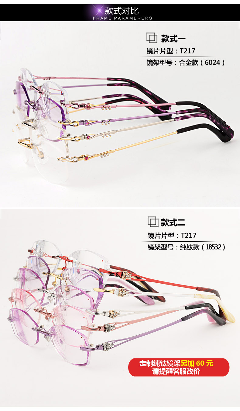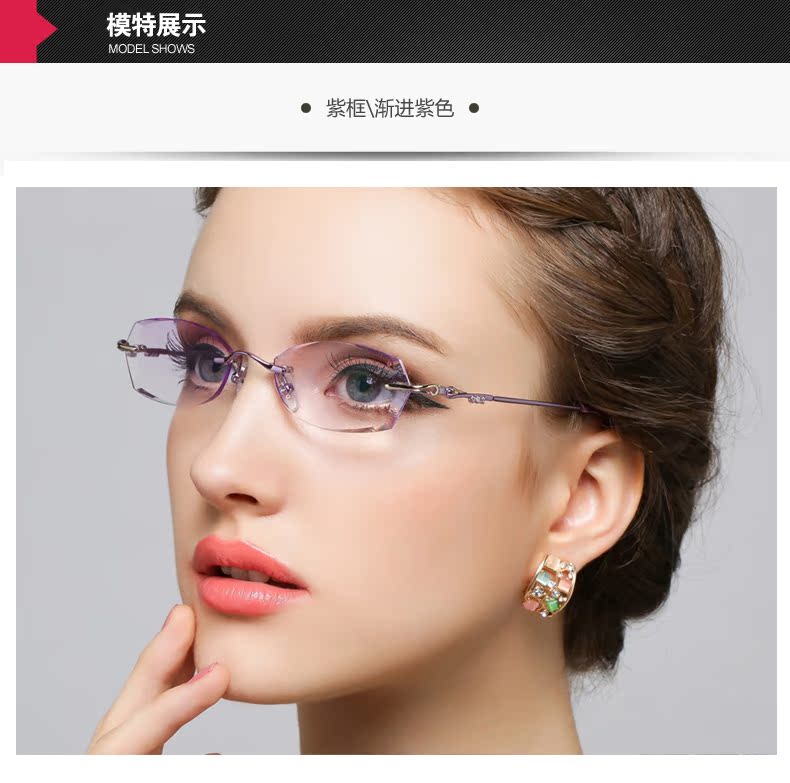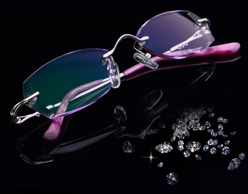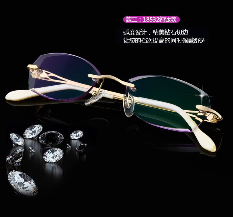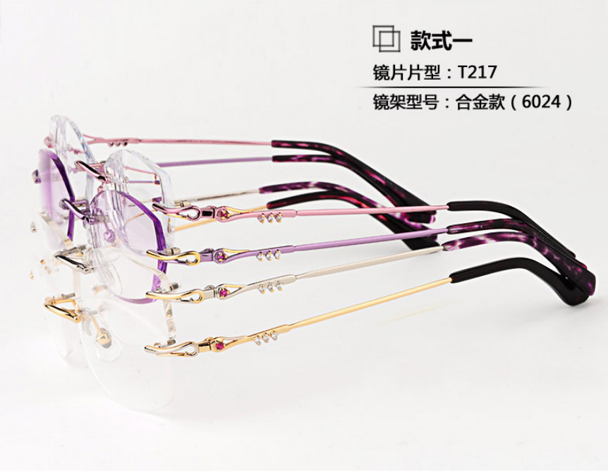 高度超薄無框近視眼鏡架女士變色 鑽石切邊眼鏡 配眼鏡近視女T217 鏡架質保356天 氣質文雅 超韌耐摔 (不限次數, 終生保養)¥4600】